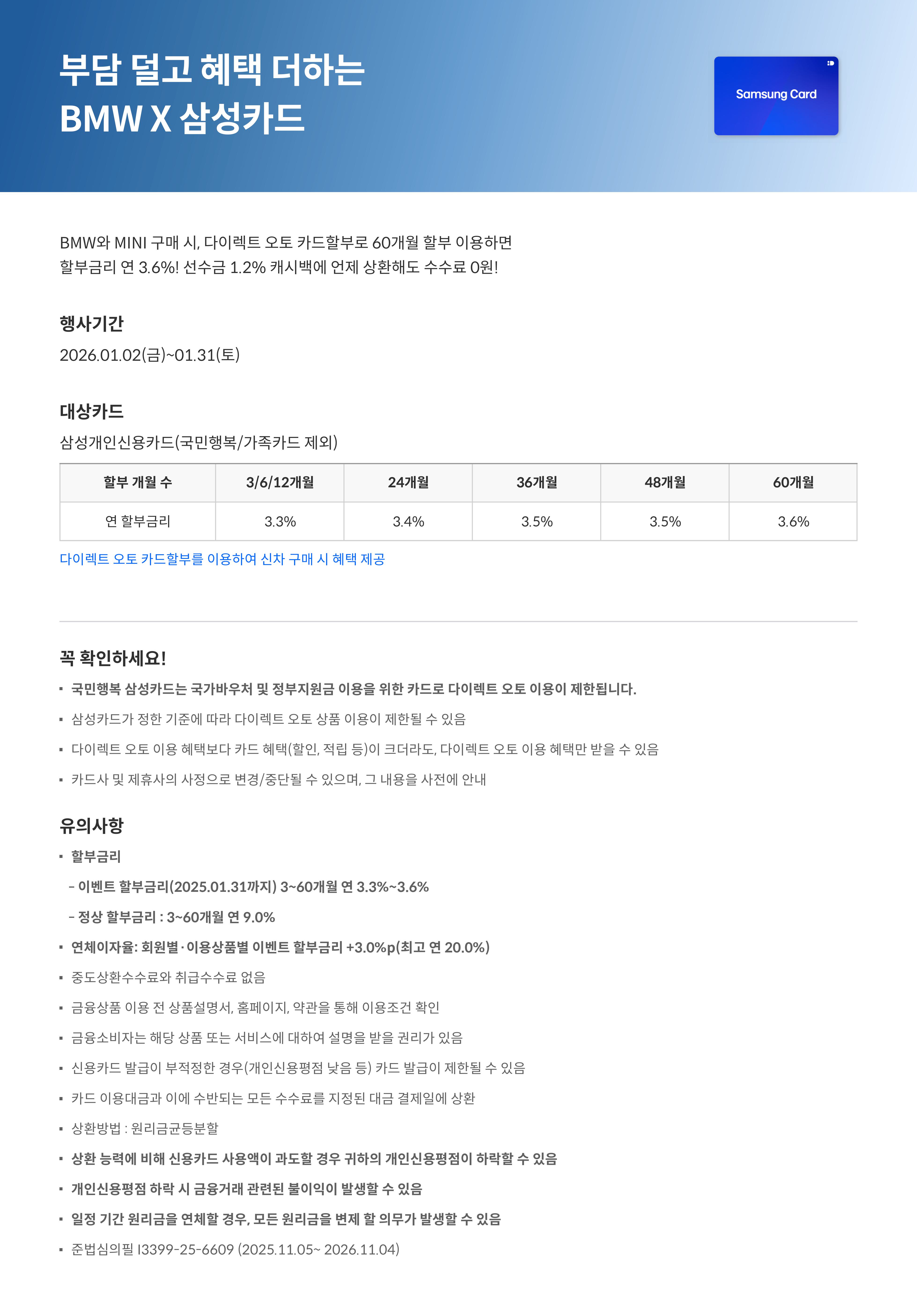 1월 도이치 모터스ㅣ삼성카드 다이렉트 오토 카드할부